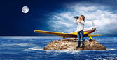 młody chłopak zegarek w szybie pole pod niebem
