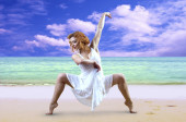 młode piękne kobiety w biały, wypoczynek w słonecznej pustyni