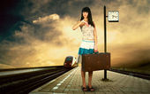 Zdjęcie "Young woman waiting on the road with her vintage baggage" może być wykorzystywane do celów osobistych i komercyjnych zgodnie z warunkami zakupionej licencji Royalty-free. Obraz jest dostępny do pobrania w jakości wysokiej rozdzielczości do 5760x3840.