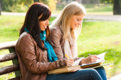Zdjęcie "dwie dziewczyny odrabiania lekcji w parku." może być wykorzystywane do celów osobistych i komercyjnych zgodnie z warunkami zakupionej licencji Royalty-free. Obraz jest dostępny do pobrania w jakości wysokiej rozdzielczości do 5760x3840.