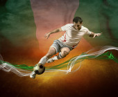 portret piłkarzem na boisku w nocy deszcz