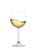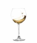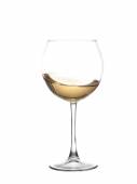 Białe wino leje z intro butelki szklane na białym tle