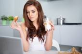 Uśmiechnięta młoda kobieta za pomocą laptopa