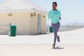 Sportowy african american kobieta stojąc na zewnątrz