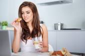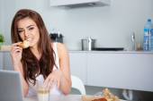 Uśmiechnięta młoda kobieta za pomocą laptopa