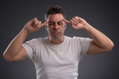 Zdjęcie "Człowiek w okularach zerkając na stole" może być wykorzystywane do celów osobistych i komercyjnych zgodnie z warunkami zakupionej licencji Royalty-free. Obraz jest dostępny do pobrania w jakości wysokiej rozdzielczości do 5760x3840.