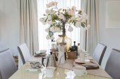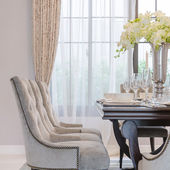 białe nowoczesne jadalnia z kwiatów na stole w domu
