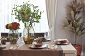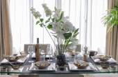 Zdjęcie "białe nowoczesne jadalnia z kwiatów na stole w domu" może być wykorzystywane do celów osobistych i komercyjnych zgodnie z warunkami zakupionej licencji Royalty-free. Obraz jest dostępny do pobrania w jakości wysokiej rozdzielczości do 5760x3840.
