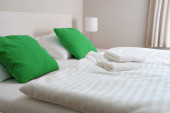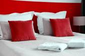 Podwójne łóżko w pokoju hotelowym. Zakwaterowanie