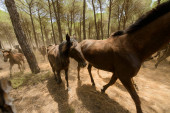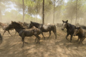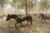 In June, a livestock event is held in which herds of mares and their foals are transported from the Donana Park to the village of Almonte to be prepared and selected for sale.