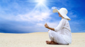 młode piękne kobiety w biały, wypoczynek w słonecznej pustyni