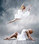 kobieta tancerz skok pozowanie na tle