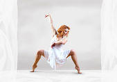 kobieta tancerz skok pozowanie na tle