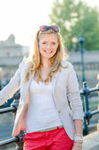 piękna kobieta siedzi wzdłuż przy stoliku w kawiarni nasyp