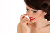 Zdjęcie "Dziewczyna w profilu z kolorem koral wargi." może być wykorzystywane do celów osobistych i komercyjnych zgodnie z warunkami zakupionej licencji Royalty-free. Obraz jest dostępny do pobrania w jakości wysokiej rozdzielczości do 5760x3840.
