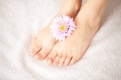 kobieta nogi stojąc na ręcznik