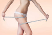 kobieta pomiaru jej udo z białej taśmy metrycznych