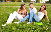 szczęśliwy grupa przyjaciół uśmiechający się na świeżym powietrzu w parku