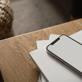 Zdjęcie "Flat lay of mobile smart phone with blank screen of gadget on notebook. Digital cell phone with copy space area on white background with pencil and leaf" może być wykorzystywane do celów osobistych i komercyjnych zgodnie z warunkami zakupionej licencji Royalty-free. Obraz jest dostępny do pobrania w jakości wysokiej rozdzielczości do 5760x3840.