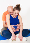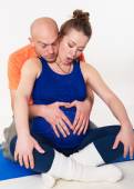 Fotografowanie kobiety w ciąży w studio w różnych pozycjach.
