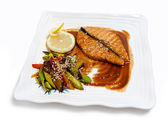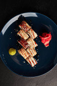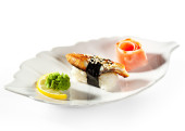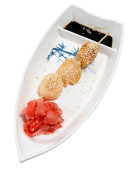snish kebab na talerzu w postaci łodzi