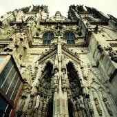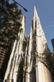 Lights on facade of St. Patrick's Cathedral in New York City