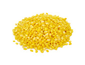 żółta soczewica na białym tle na biały background.macro strzał