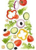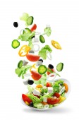 Jedzenie sałatka w misce z pomidory, cebula, oliwki, ogórek