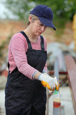Kobieta sadząca młode sadzonki w wiosenny dzień. Hodowla własnych owoców i warzyw w zagrodzie. Ogrodnictwo i styl życia samowystarczalności.