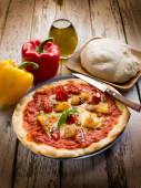 Zdjęcie "Pizza z fesh pomidory pizza con pomodori freschi" może być wykorzystywane do celów osobistych i komercyjnych zgodnie z warunkami zakupionej licencji Royalty-free. Obraz jest dostępny do pobrania w jakości wysokiej rozdzielczości do 5760x3840.