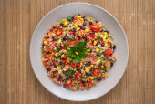 Zdjęcie "Quinoa i sałatka z czarnej fasoli" może być wykorzystywane do celów osobistych i komercyjnych zgodnie z warunkami zakupionej licencji Royalty-free. Obraz jest dostępny do pobrania w jakości wysokiej rozdzielczości do 5760x3840.