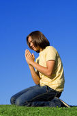 chrześcijanin, modląc się modlitwą w obozie Biblii