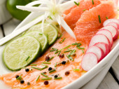 Zdjęcie "Tatar z łososia z cytryny i szczypiorek" może być wykorzystywane do celów osobistych i komercyjnych zgodnie z warunkami zakupionej licencji Royalty-free. Obraz jest dostępny do pobrania w jakości wysokiej rozdzielczości do 5760x3840.
