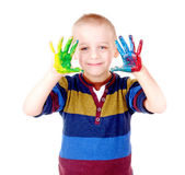 szczęśliwy chłopiec z rąk malowane - na białym tle