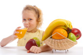 dziewczynka gospodarstwa lato owoce sałatka z bąbelkami