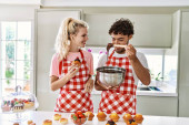 Zdjęcie "Młoda para uśmiecha się pewnie robiąc koktajl za pomocą miksera w kuchni" może być wykorzystywane do celów osobistych i komercyjnych zgodnie z warunkami zakupionej licencji Royalty-free. Obraz jest dostępny do pobrania w jakości wysokiej rozdzielczości do 5760x3840.