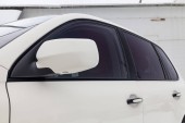 Zbliżenie na pokrywie bagażnika szarego samochodu z plastikowym spojlerem nad tylną szybą w celu poprawy aerodynamiki nadwozia samochodu podczas strojenia do wyścigów.