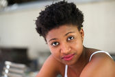 Słodkie młoda kobieta uśmiechając się na zielonym tle
