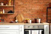 Zdjęcie "Fasada drewnianej niebieskiej kuchni we wnętrzu domu z nowoczesnymi meblami, kuchenką gazową, piekarnikiem, okapem kuchennym, przyborami kuchennymi. Przytulne miejsce do gotowania koncepcji. Nowoczesne urządzenia gospodarstwa domowego" może być wykorzystywane do celów osobistych i komercyjnych zgodnie z warunkami zakupionej licencji Royalty-free. Obraz jest dostępny do pobrania w jakości wysokiej rozdzielczości do 5760x3840.