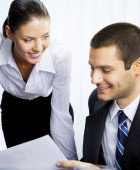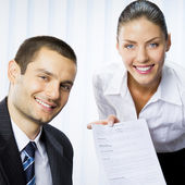 dwóch biznesmenów lub klienta i biznesmen, dając pióro dla sig