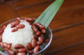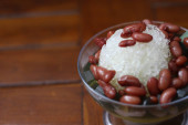 Zdjęcie "Es Kacang Merah or a cold drink made from red beans boiled with brown sugar served with coconut milk, shaved ice and covered with sweetened condensed milk chocolate and syrup. Indonesian traditional food photo concept." może być wykorzystywane do celów osobistych i komercyjnych zgodnie z warunkami zakupionej licencji Royalty-free. Obraz jest dostępny do pobrania w jakości wysokiej rozdzielczości do 5760x3840.