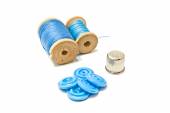 Zdjęcie "przyciski i niebieski szpulę wątku" może być wykorzystywane do celów osobistych i komercyjnych zgodnie z warunkami zakupionej licencji Royalty-free. Obraz jest dostępny do pobrania w jakości wysokiej rozdzielczości do 5760x3840.