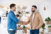 Zdjęcie "Gay couple with cups of coffee holding hands in kitchen at home " może być wykorzystywane do celów osobistych i komercyjnych zgodnie z warunkami zakupionej licencji Royalty-free. Obraz jest dostępny do pobrania w jakości wysokiej rozdzielczości do 5760x3840.