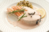 grillowane świeżego łososia z sosem śmietanowym i zielonym pieprzem