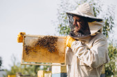 Zdjęcie "Pszczelarz trzyma komórkę miodu z pszczołami w rękach. Pszczelarstwo. Apiary. Pracujące pszczoły na plastrze miodu. Plaster miodu i pszczół zbliżenie." może być wykorzystywane do celów osobistych i komercyjnych zgodnie z warunkami zakupionej licencji Royalty-free. Obraz jest dostępny do pobrania w jakości wysokiej rozdzielczości do 5760x3840.