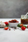 Concept of tasty food - sun-dried tomato, space for text