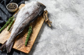 Zdjęcie "Grilled sea bass fillet with lime and thyme. Black background. Top view." może być wykorzystywane do celów osobistych i komercyjnych zgodnie z warunkami zakupionej licencji Royalty-free. Obraz jest dostępny do pobrania w jakości wysokiej rozdzielczości do 5760x3840.