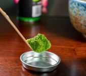 Przygotowanie zielonej herbaty Matcha z drobno mielonego proszku specjalnie uprawianych i przetworzonych liści zielonej herbaty spożywanych w Azji Wschodniej i Japonii.