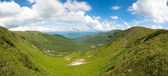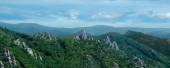 Wiosna Krym Górska panorama kraju z doliną i Sokolyne Village (Ukraina). Okolice Wielkiego Krymu Kanionu.