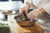 Zdjęcie "Szef kuchni przygotowuje jedzenie. Zbliżenie kucharza przygotowującego awokado w przestronnej nowoczesnej kuchni." może być wykorzystywane do celów osobistych i komercyjnych zgodnie z warunkami zakupionej licencji Royalty-free. Obraz jest dostępny do pobrania w jakości wysokiej rozdzielczości do 5760x3840.